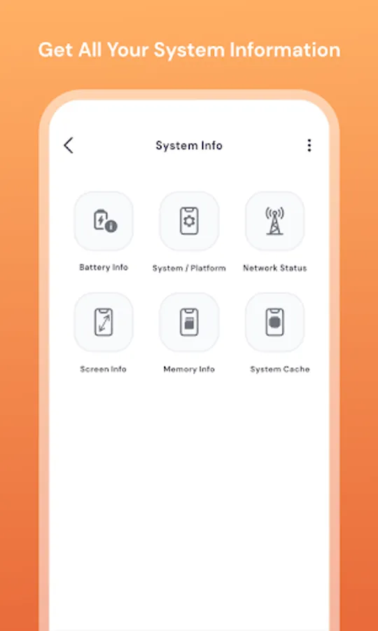 In system Info you can get all details of your phone like battery info, system info, network info, screen info and many more..