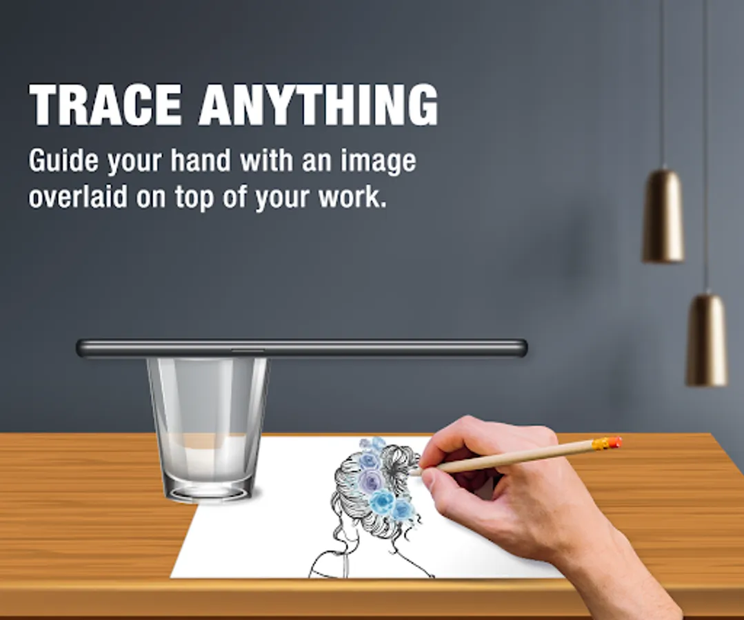 Simply upload a picture or line drawing that you want to trace (or look for one online to practise with), resize the image so that it is clear, and hold your phone in a tripod, cup, or stack of books so that it is elevated above the page.