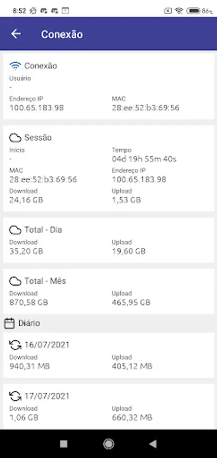 WSNet Internet e Dados Screenshots