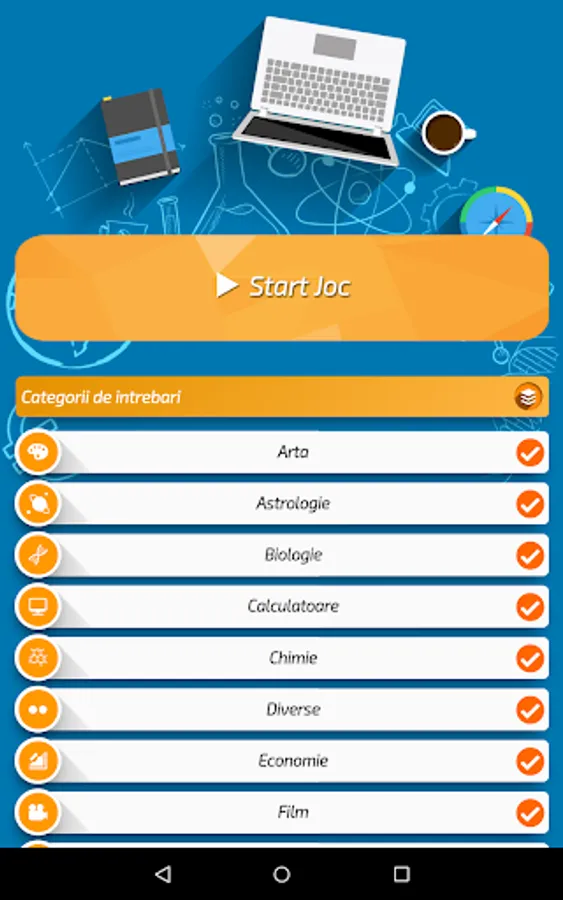 - teste cu intrebari din multiple categorii(Astronomie, Geografie, Istorie, Stiinta, Internet, Film, Sport, etc.)