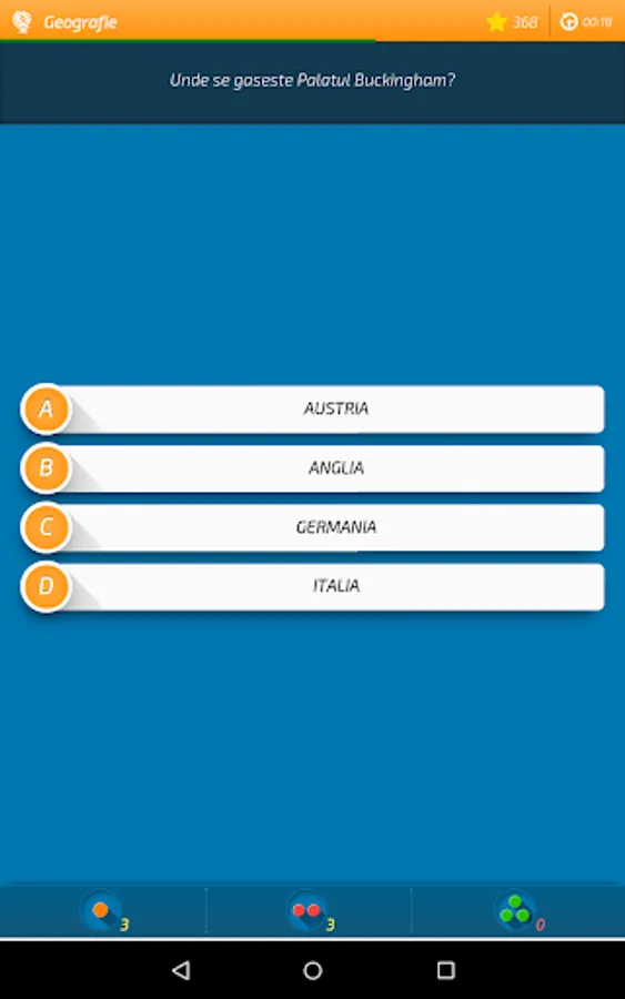 - mii de intrebari captivante cu 4 variante de raspuns(intrebari specifice pentru Romania dar nu numai)