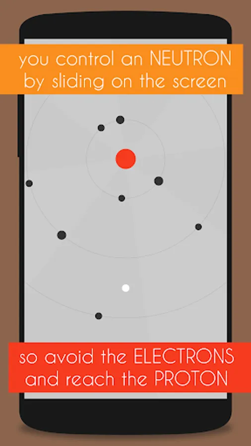 Atom is a game about atoms. Each level consists of a proton in the center, electrons spinning around of it, and a neutron that you control. The objective is to reach the nucleus of the atom avoiding the electrons.