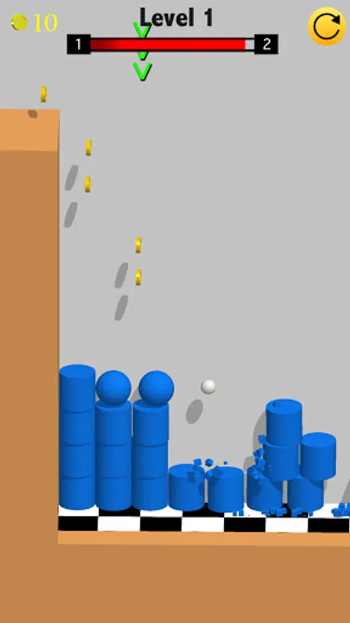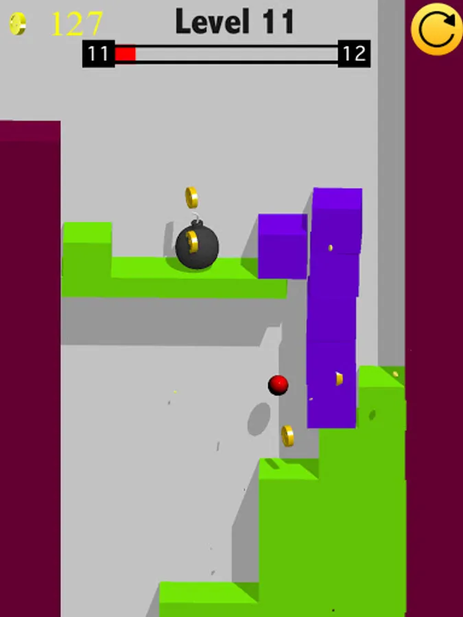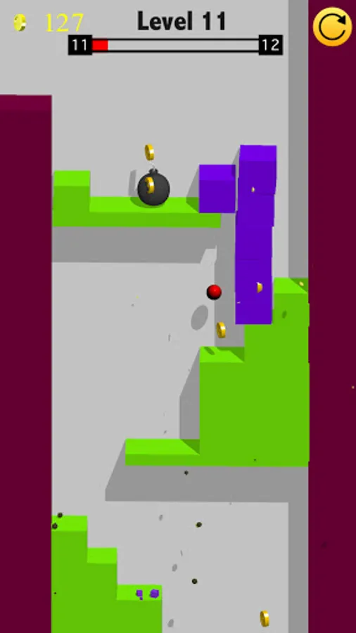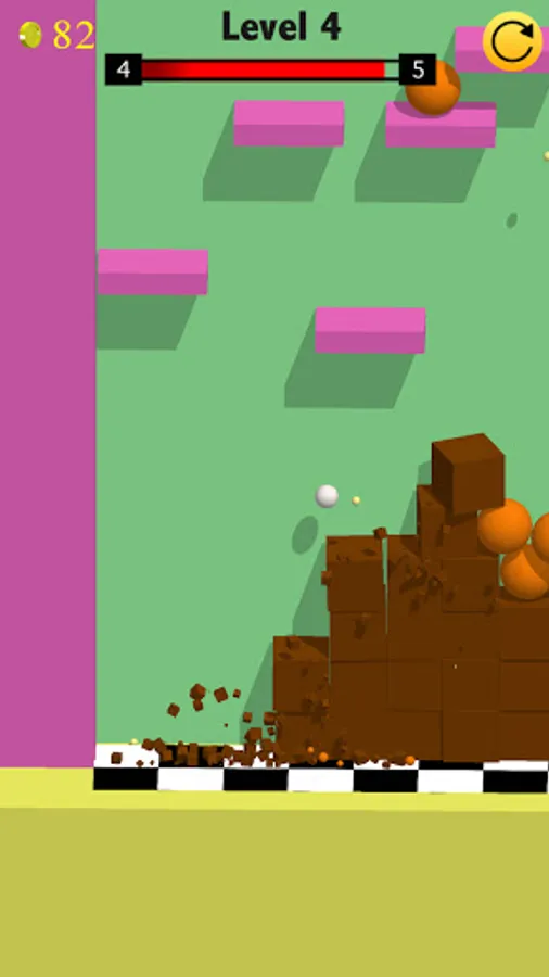 Tap and hold the left part of the screen to move left or alternatively tap and hold the right part of the screen to move right. The breaking ball is bouncing all the time and you have to guide the ball through obstacles and break objects in order to move across and win. If you go too close and touch the walls for long, the ball may stop bouncing, that's not a bug. The ball has to go through the next "fall over" in order to jump again.