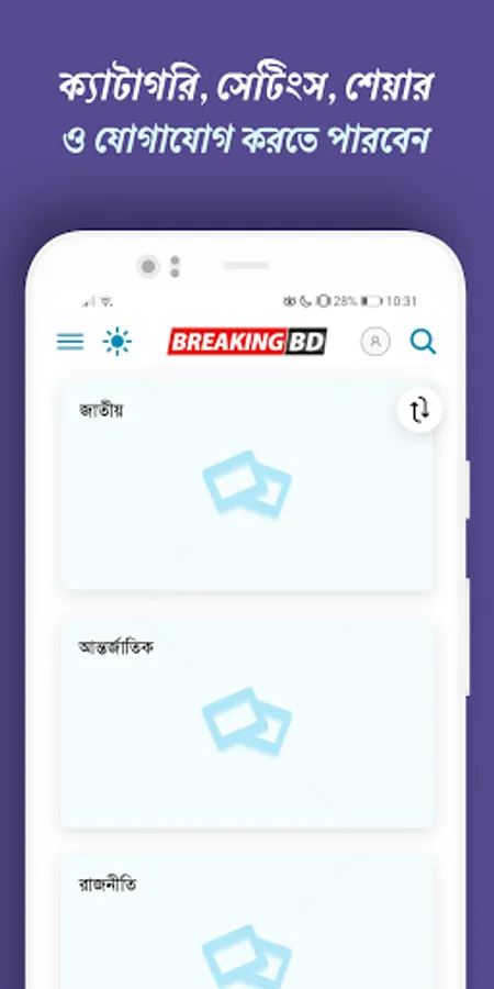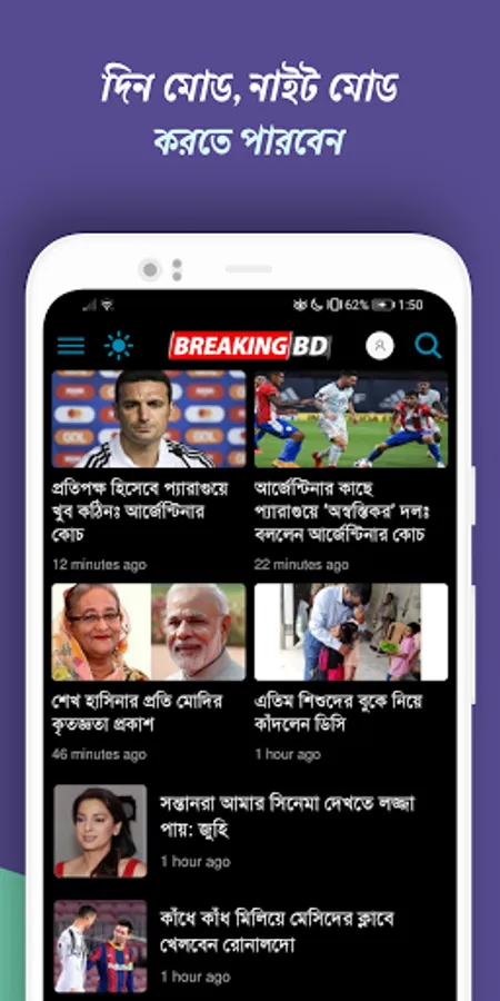 Breaking bd app for Bangla News from the most respected Bangla Newspaper keeps you updated with the latest happenings in all over Bangladesh. Bangla News app will gives you the chance to experience all the latest News from Bangladesh and all around the world in a very compact way from the comfort of your own phone or tablet. You can quickly and easily read Bangla Newspaper in many categories: National, International, Sports, Entertainment, Travel, Health, Education, Business, Breaking News, Latest News & Top News, Video News, Picture News, etc.