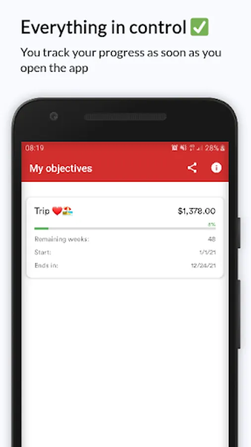 *We send you a notification every week so you can save without forgetting and in the greatest possible tranquility. In case you go ahead for weeks, we will let you free from boring notifications, always thinking about your good!