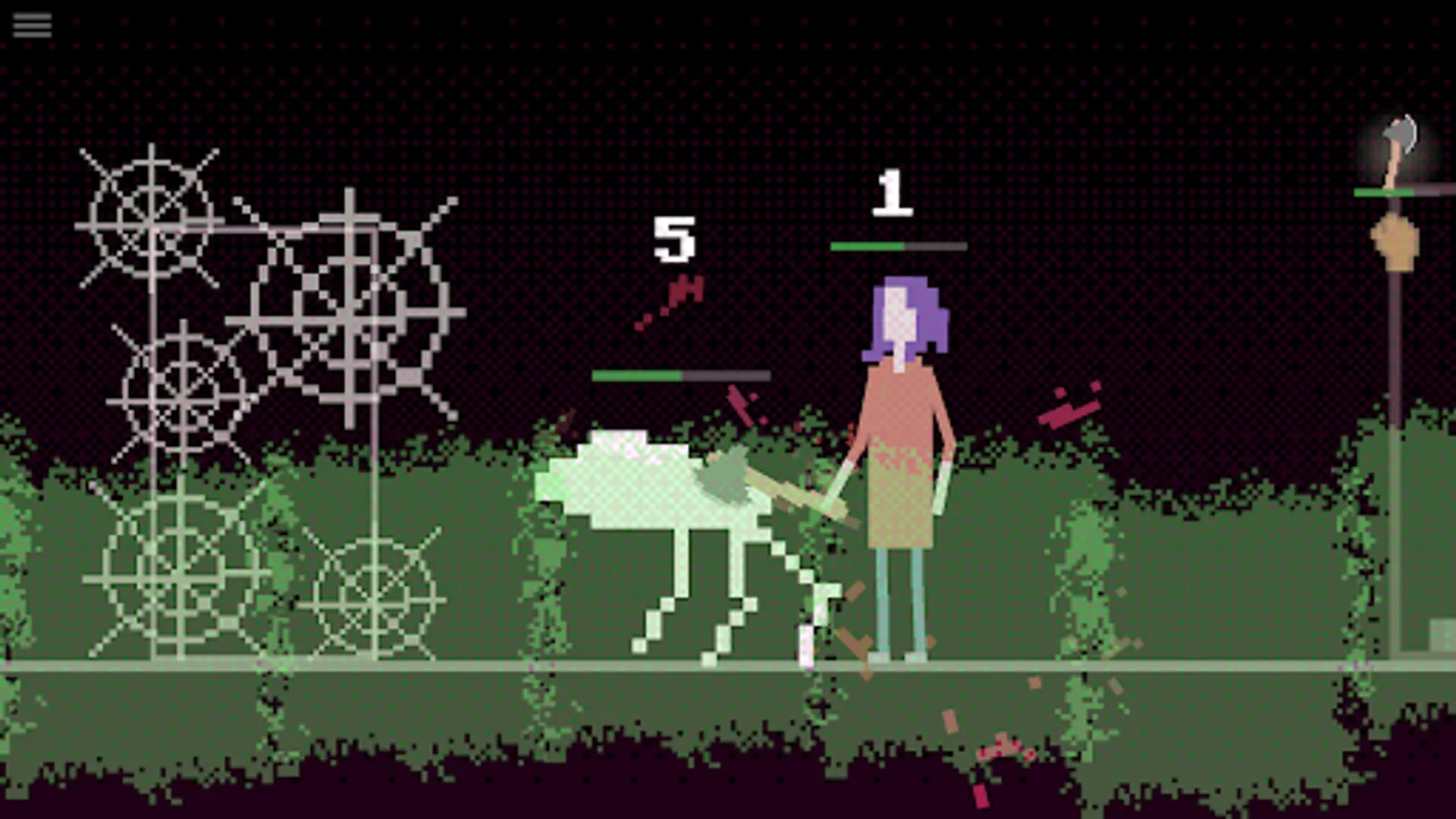 Immerse yourself in an oppressive indie horror atmosphere of unease, enhanced by haunting soundscapes and atmospheric visuals. The pixel art style of this 2D indie horror quest lends a sense of retro nostalgia while amplifying the game's sense of psycho disarray in this quest. Each scene is meticulously crafted to elicit a feeling of profound horror, captivating you and heightening the tension with every pixel.
