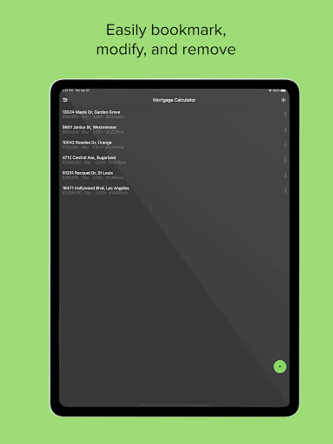 With simple and user-friendly design, our mortgage calculator can help you save a lot of time calculating and keeping your real estate list organized for different lending scenarios. This app is perfect for first time home buyers, real estate investors, real estate agents, loan officers, and mortgage lenders.