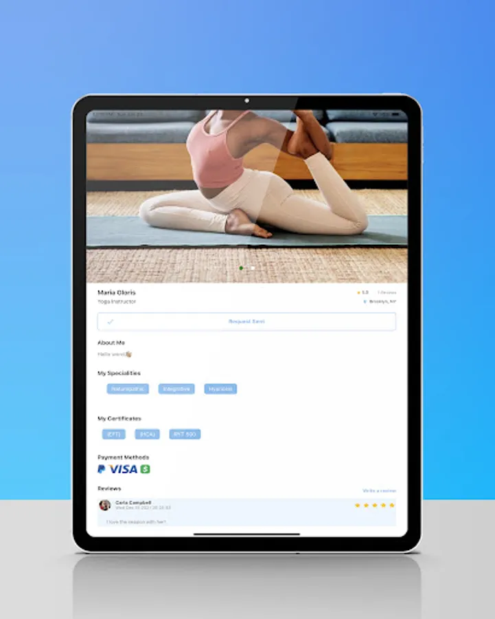 You can use our app to find nearby nutritionists, personal trainers, yoga instructors, and more.
