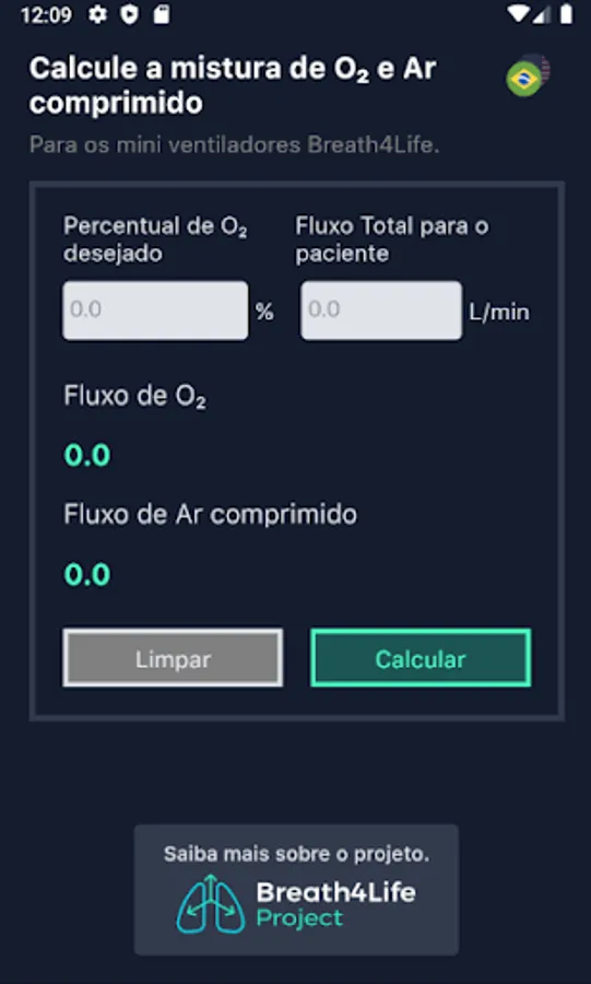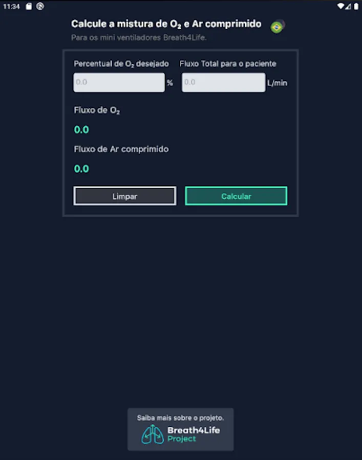 The purpose of this application is to assist in the calculation of the mixture of oxygen flow and compressed air for the Breath4Life mini ventilators.