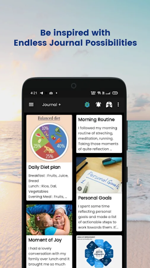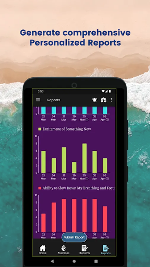 * Journal + allows users to create a digital diary of their feelings which can be synced with practices and biodata feedback using timestamps in reports