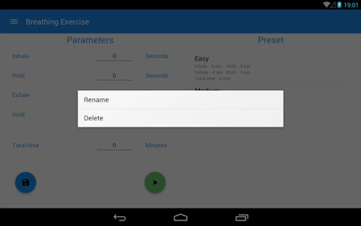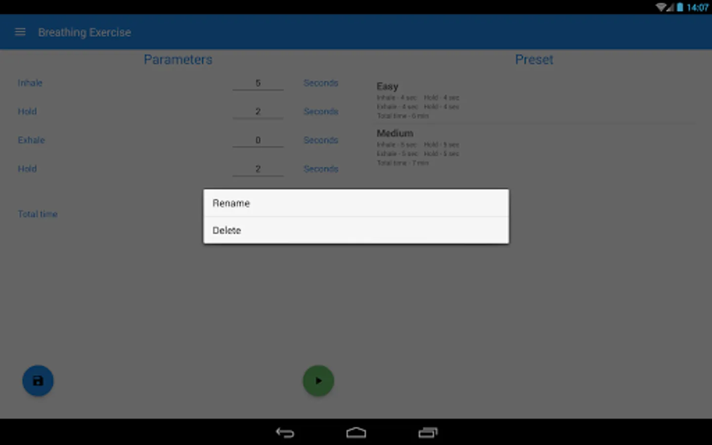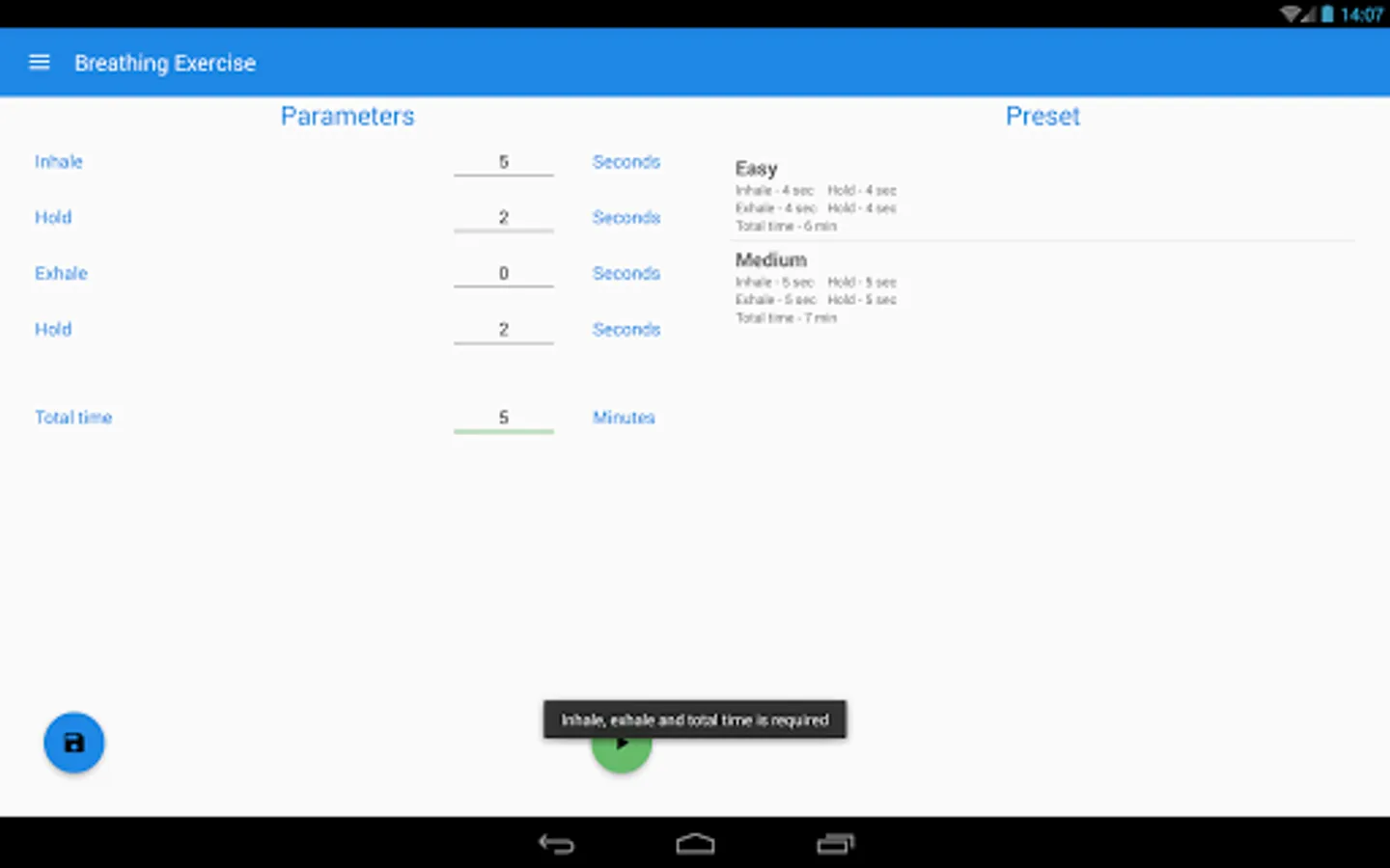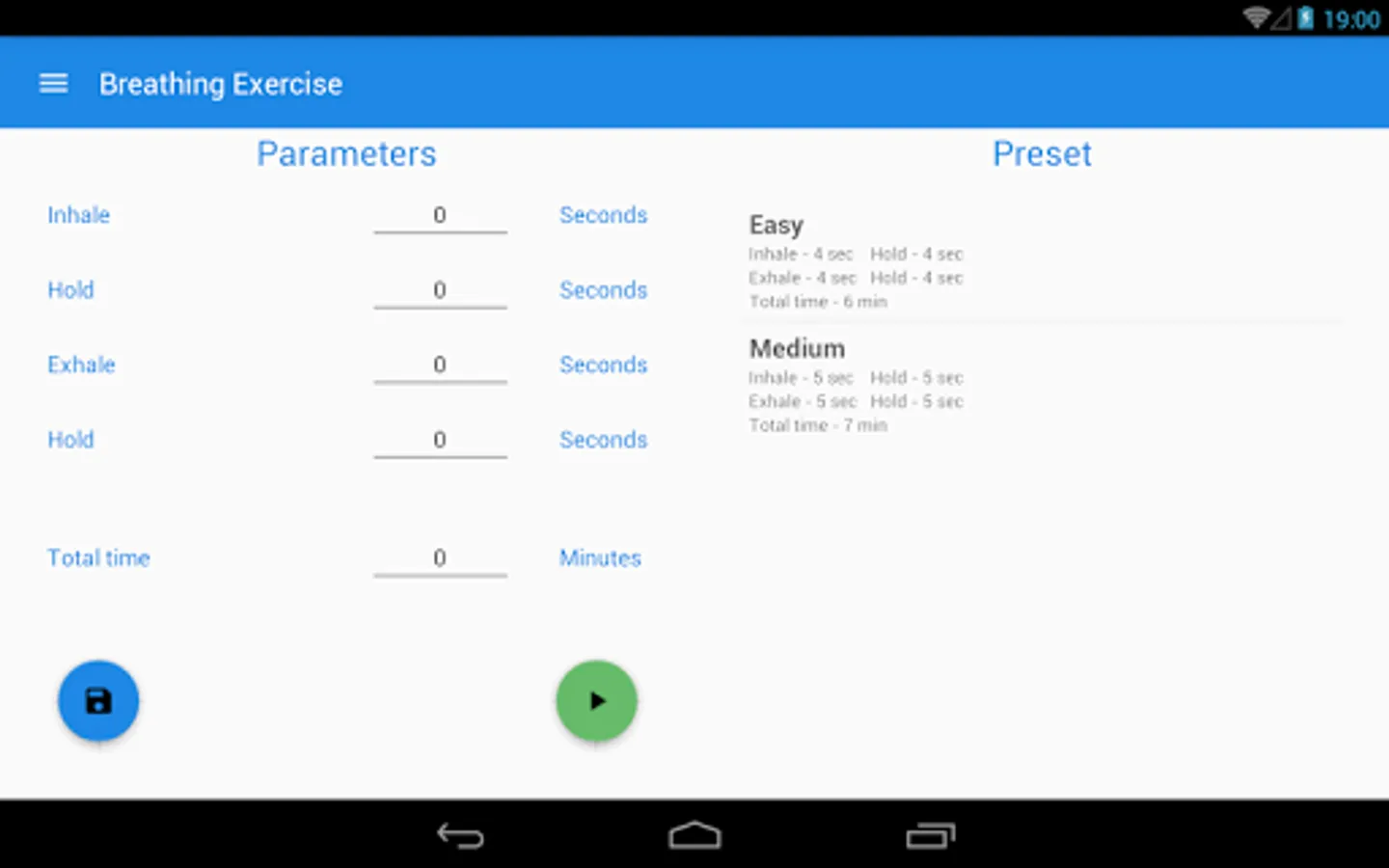 This app is used to train the breath technique with "Foursquare breath" exercise. This exercise allows you to restore optimum muscular tension. In addition, this exercise is used by free-divers - people diving without scuba gear.