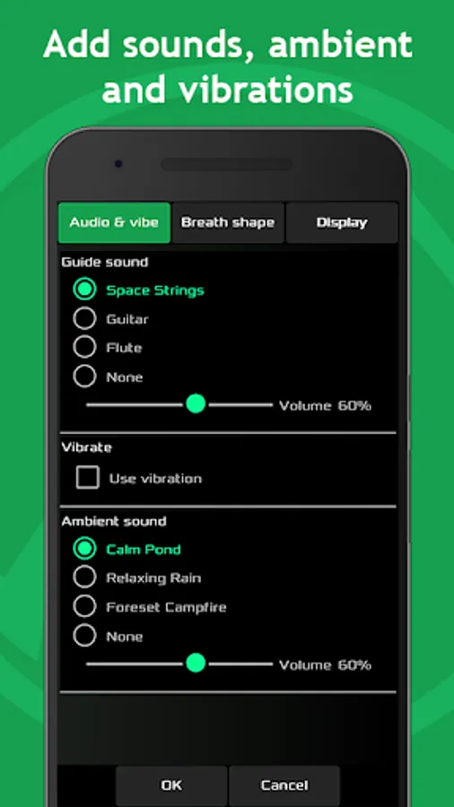 In "Simple mode" the app allows you to set a breathing function of your choice