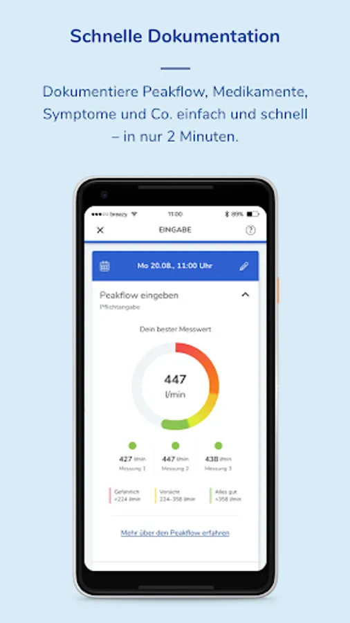 breazyTrack eDMP supports you in all tasks in your DMP asthma (disease management program). You can manage your asthma without much effort and prior knowledge and document your symptoms, medication, peak flow & more within just 2 minutes per day. And with the DMP report you are optimally prepared for your next doctor's appointment.