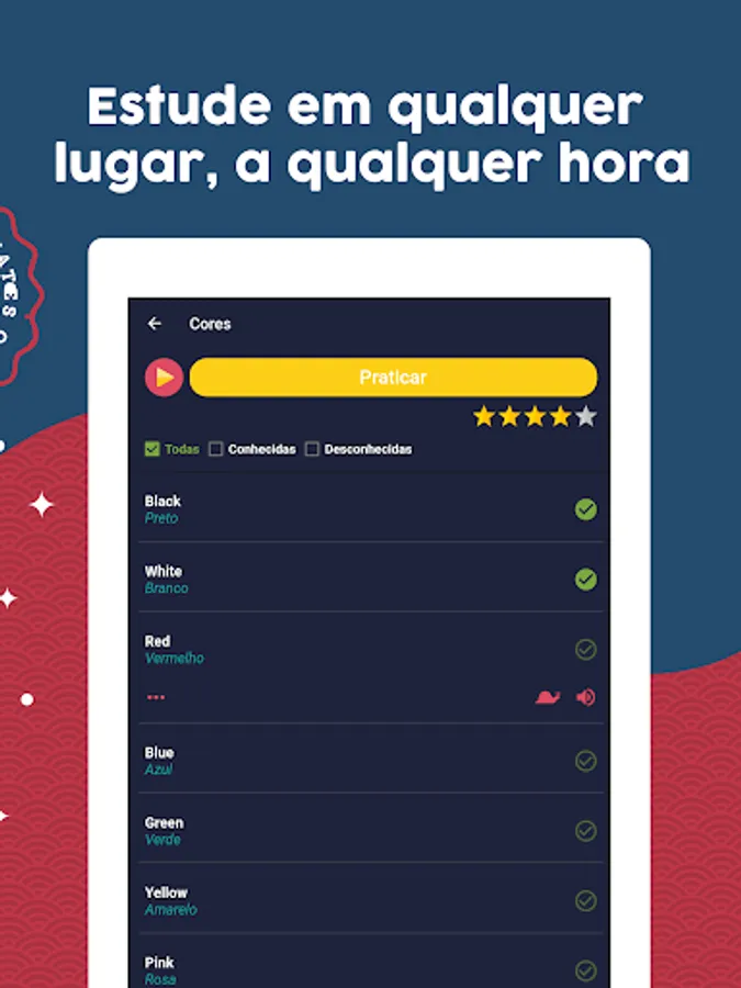 The app also offers tests for you to practice what you've learned and a review function to fix the content.