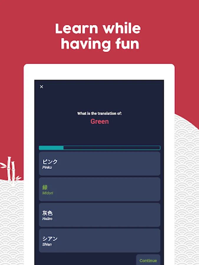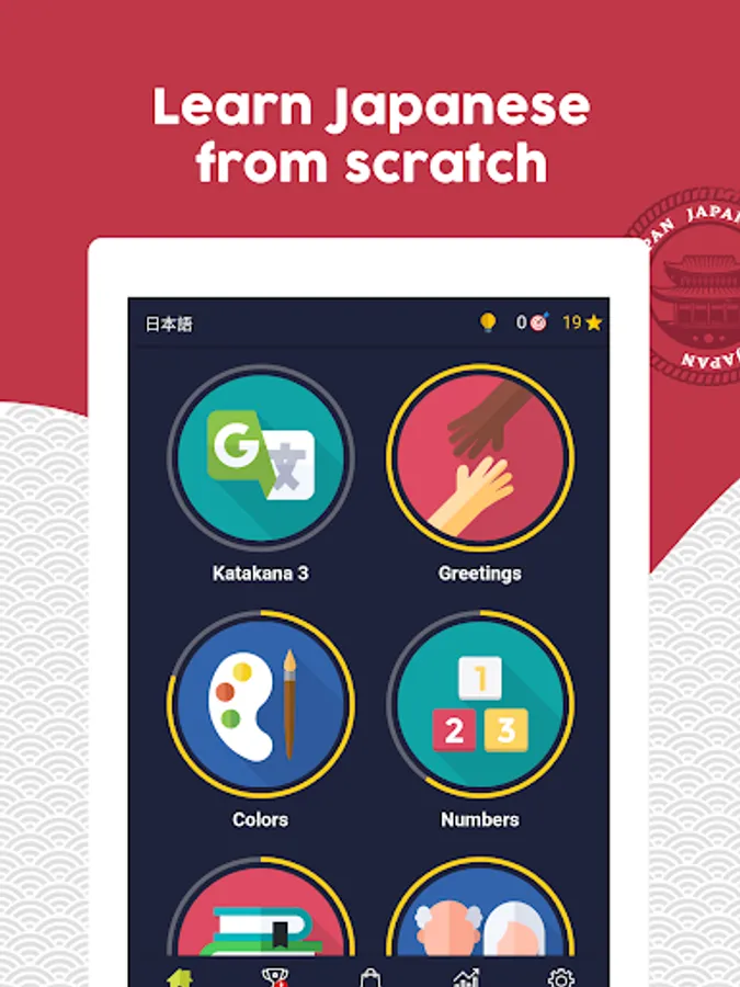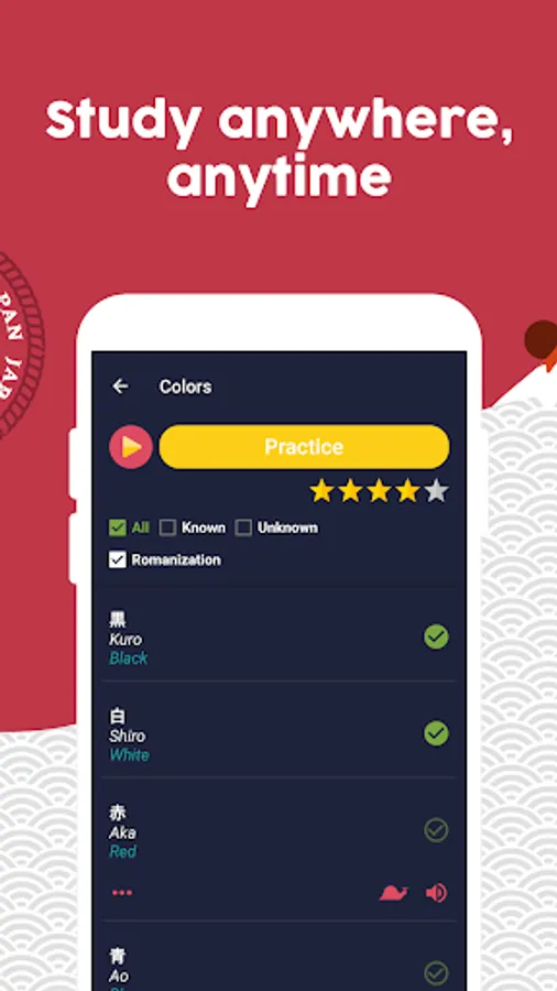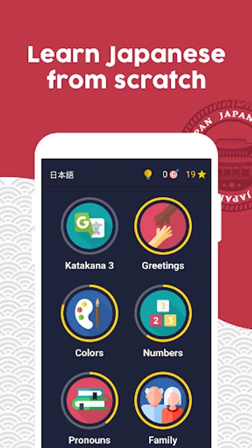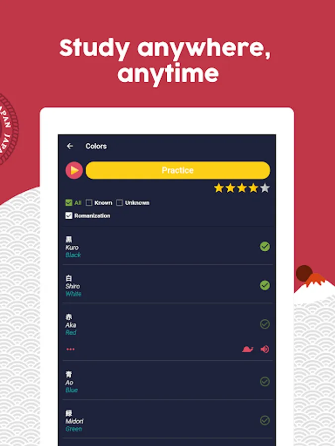 + Learn Japanese in a fun and fast way: Learn while having fun, the app is developed in the form of a game to learn Japanese quickly and easily.