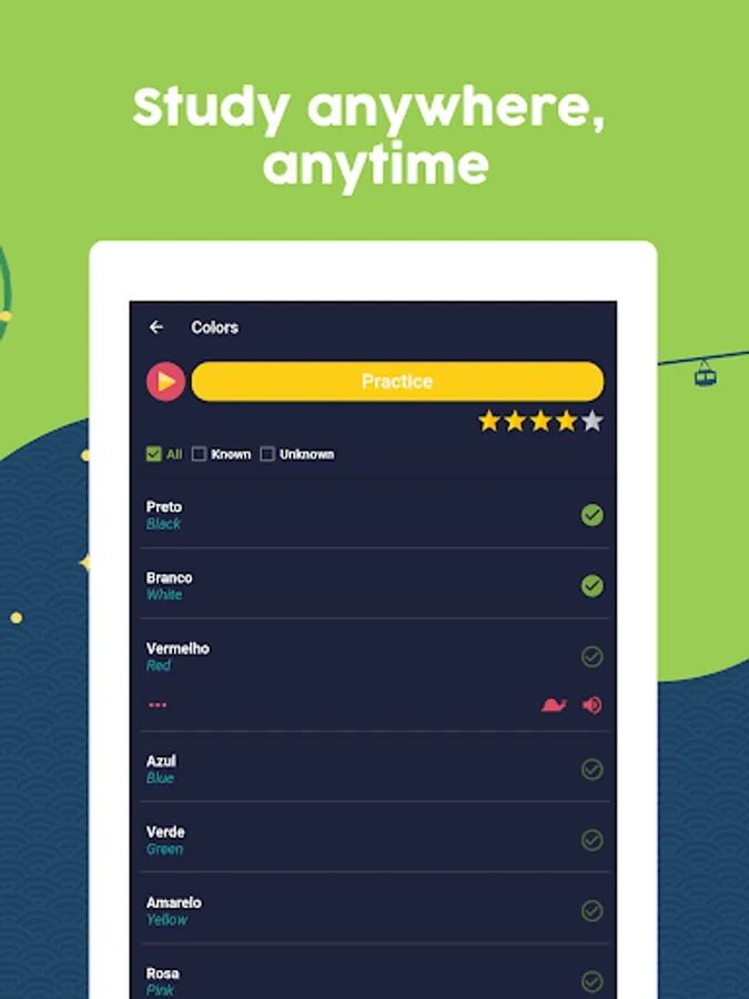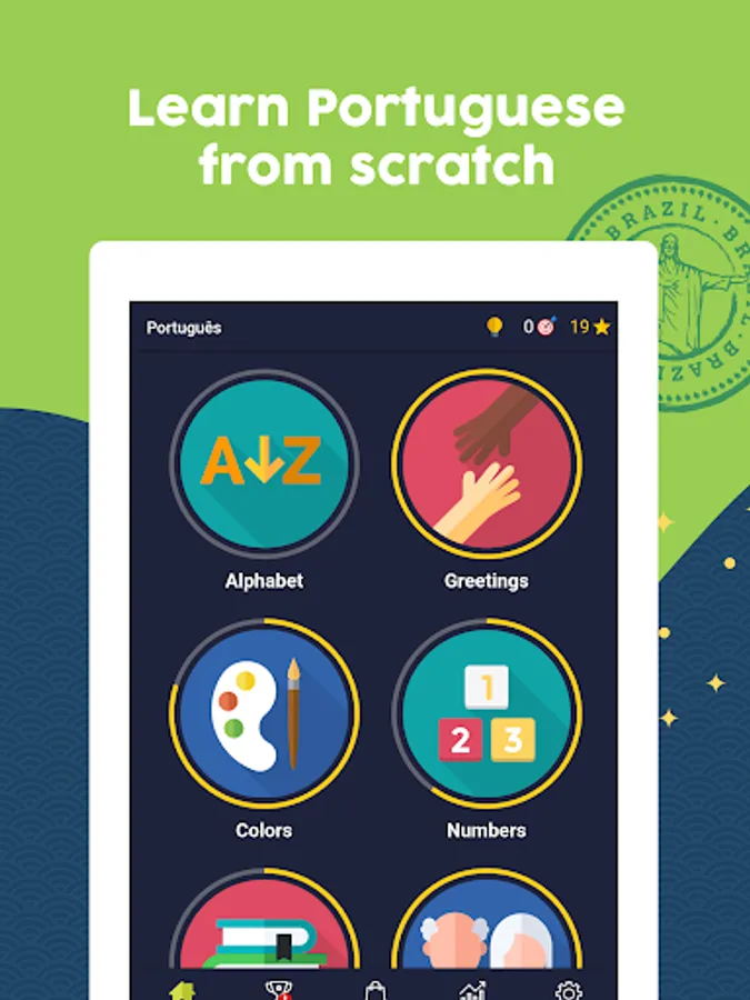 + Learn Portuguese in a fun and fast way: Learn while having fun, the app is developed in the form of a game to learn Portuguese quickly and easily.