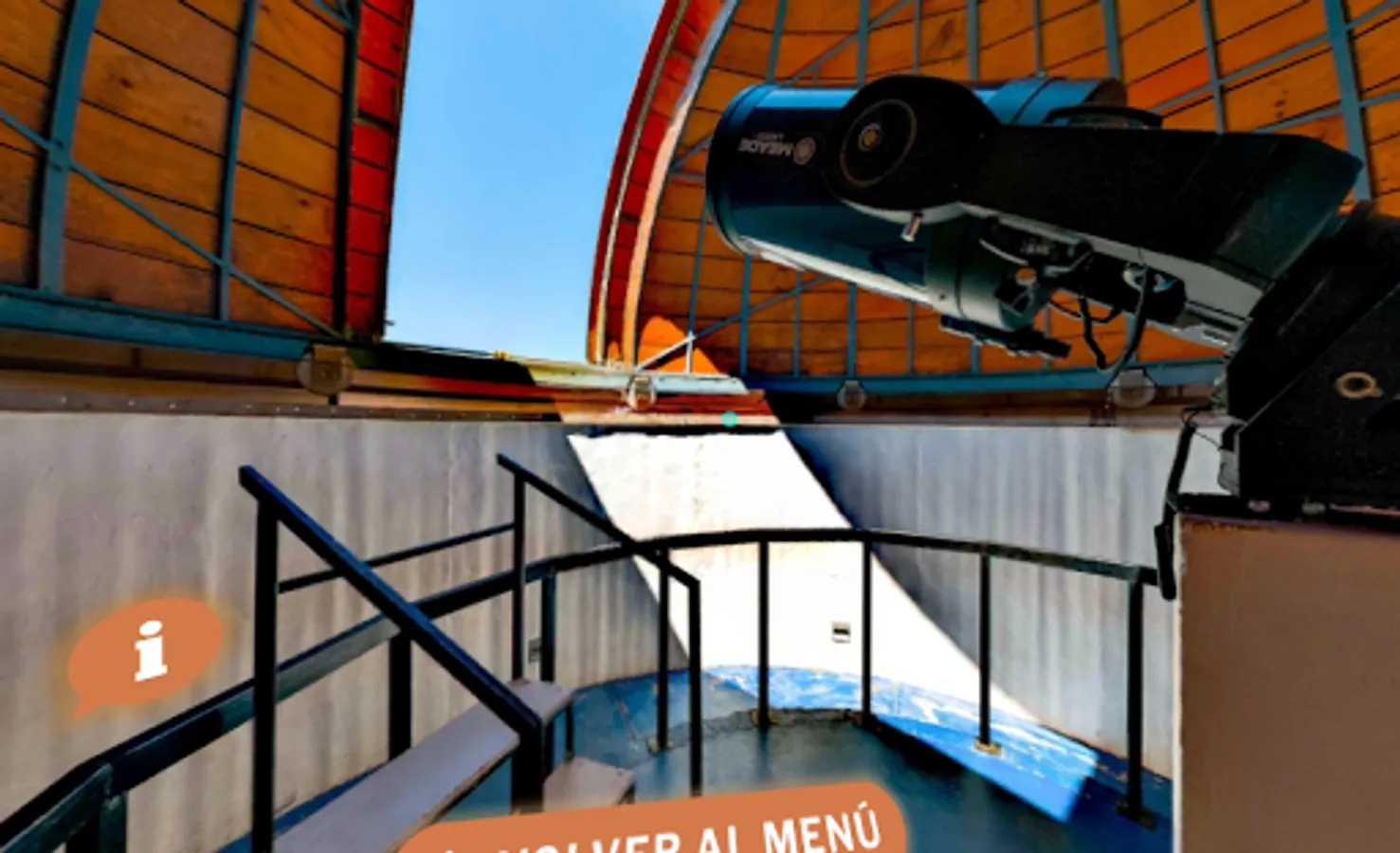 In this virtual tour through Cruz del Sur you will be able to see the showroom that displays astronomical graphics; the outdoor amphitheater with a capacity for 200 people that can be used as a natural planetarium at night. The multimedia room for conferences, talks and audiovisual projections for 80 people. The four observation domes where the domes that make up the greater horn of the Southern Cross are oriented from North to South and have 2 Schmidt Cassegrain 16-inch telescopes. The domes arranged from east to west operate with 2 Schmidt Cassegrain 14-inch telescopes.