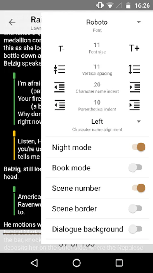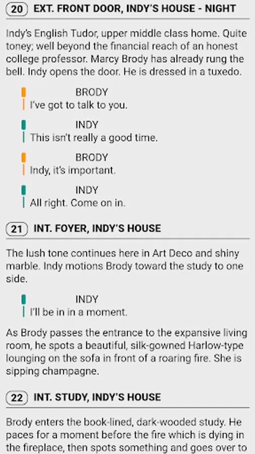 - Read scripts by scrolling vertically like on a website (default) or by flipping pages by tapping left and right on the screen like in an ebook ('Book mode')