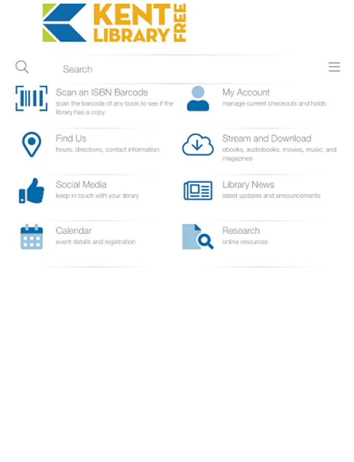 Experience Kent Free Library on the go, or from anywhere in the world. Browse the library’s collections, download or stream content, view the event calendar, check your account, connect to the library’s social media, and more.