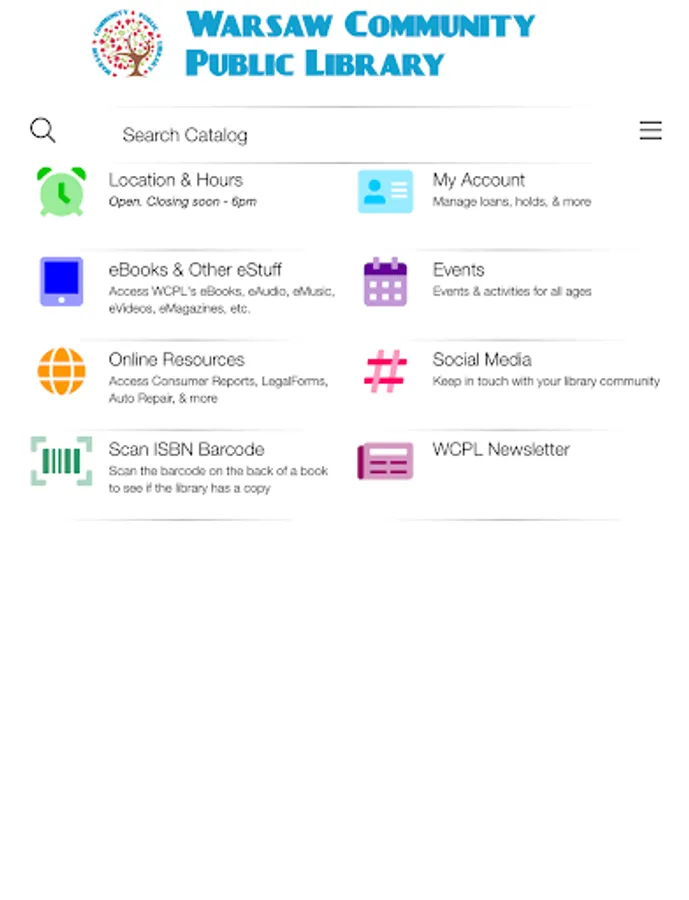 Access WCPL2GO from your Android phone or tablet. Manage your account, search the catalog, renew and reserve books.