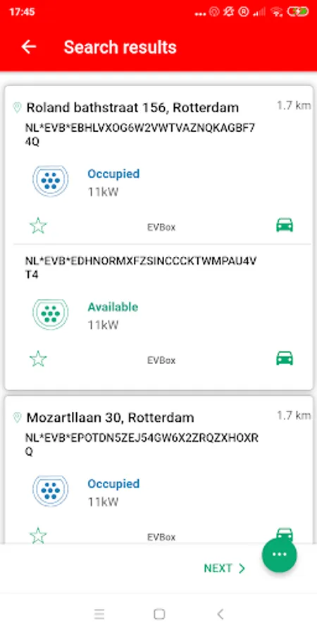 - Easy search for charging stations in the area (e.g. by region, zip code or address). Extra handy: you can see the exact distance to the charging stations themselves.