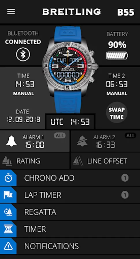 - Configure the different chronograph functions such as Regatta chronograph, Timer, Chrono Add and Lap timer.