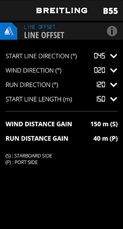 - Easily calculate the gain in angle or meter for the wind and the mark by introducing the start line direction and length, and/or wind and run directions.