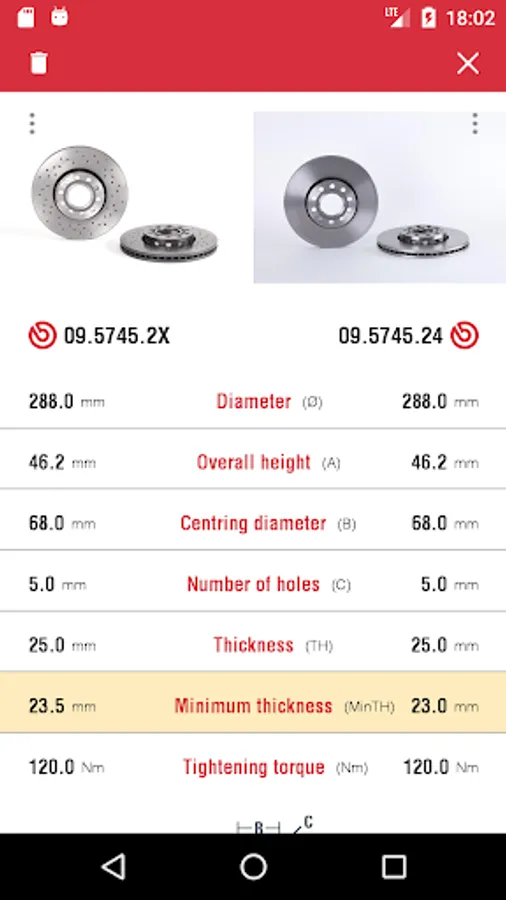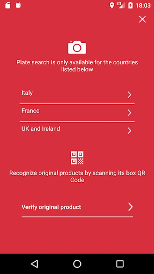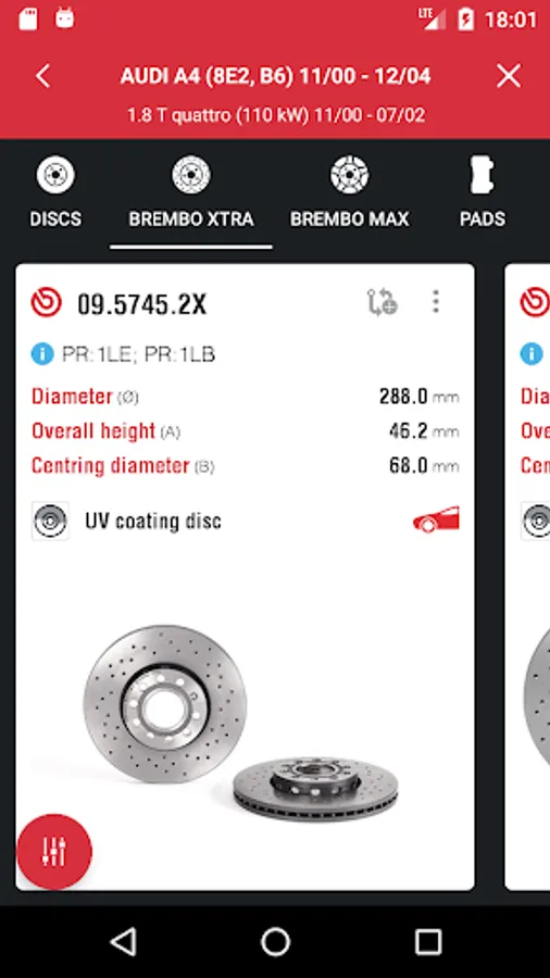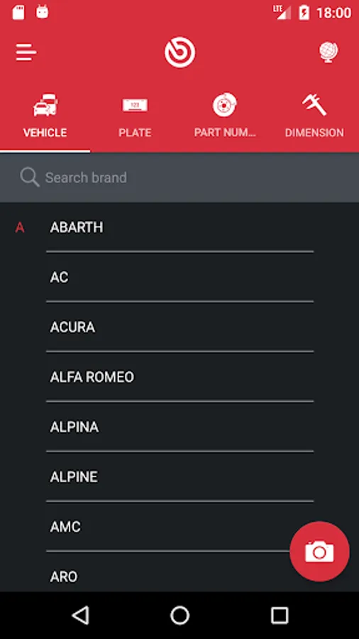 • Search by plate (only Italy, France, UK and Ireland). News: from today it is only necessary to scan the license plate and the APP will give you the Brembo part numbers available