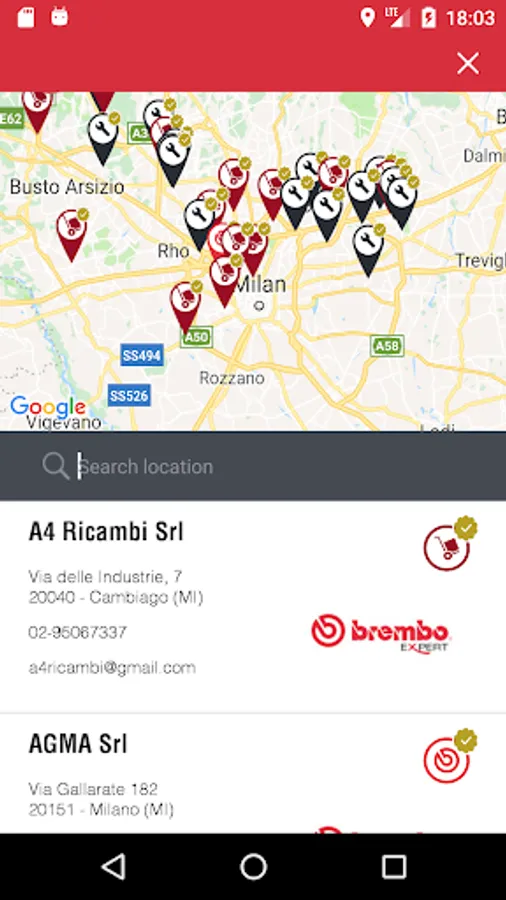 • Locate the Brembo dealer nearest you, to find out about prices and product availability