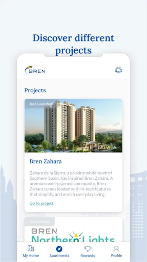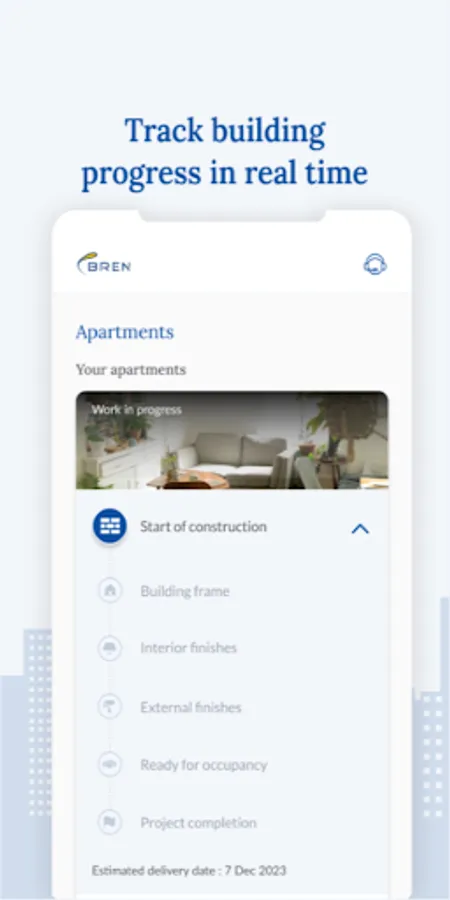 Easily Accessible: We help owners of the Bren residential apartments easily access their booking details, property documents, view apartment floor plans, track the construction progress in the My Home section using the app.