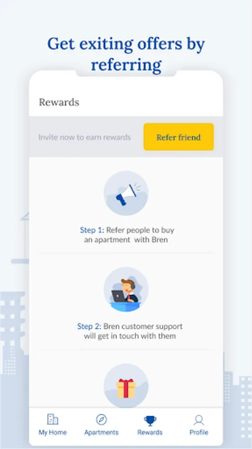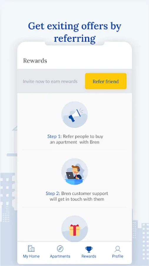 Rewards: Bren Property Owner can easily refer a friend/family member if they are planning to buy Bren properties. Get exciting offers by referring.