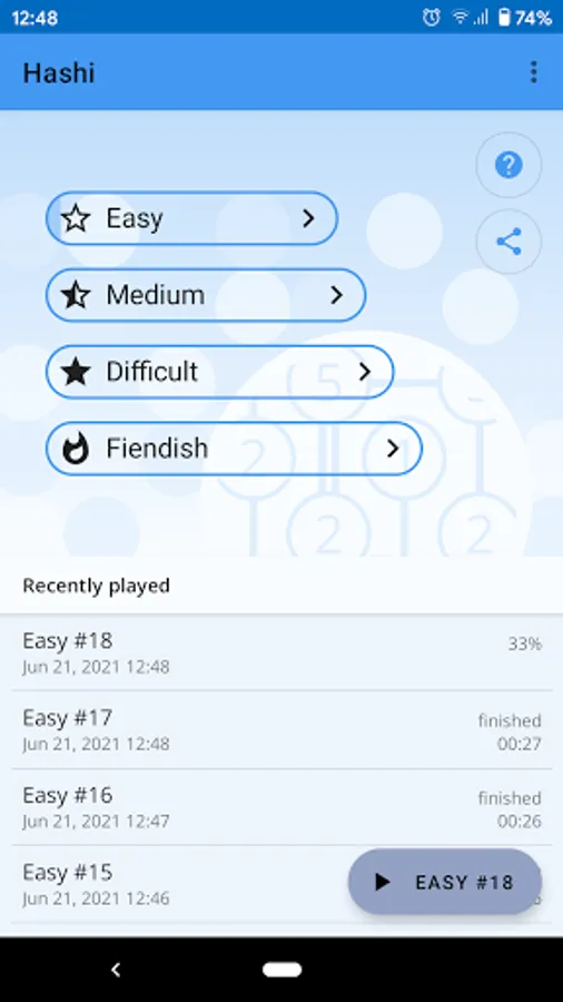 Solve Hashi puzzles to challenge yourself, to relax, to train your brain, or to kill some time. This logic puzzle provides hours of challenging entertainment! With puzzles ranging from easy to fiendish, it offers something for both beginners and experts.