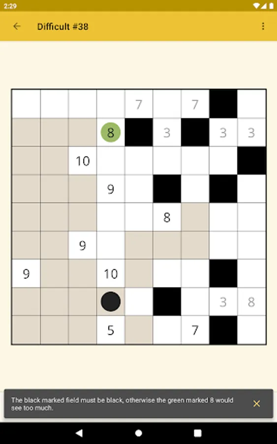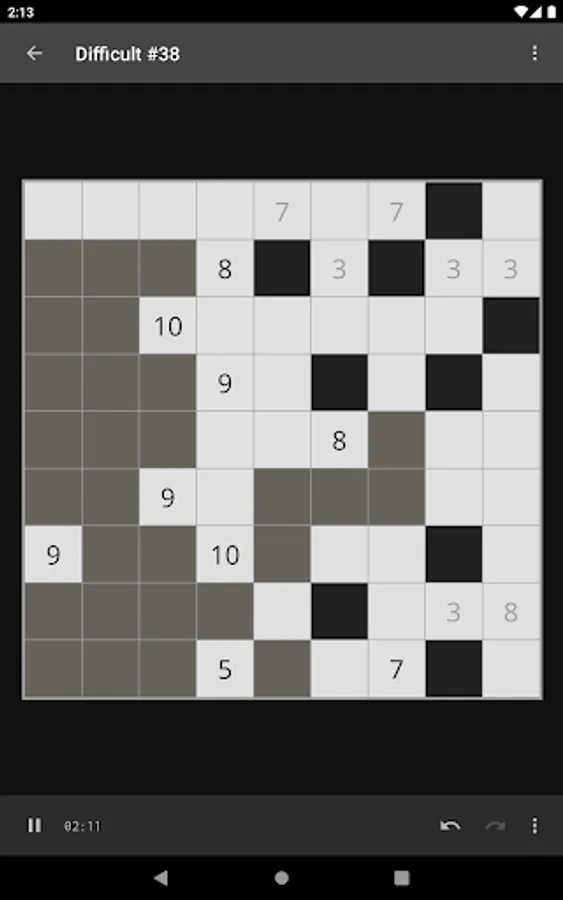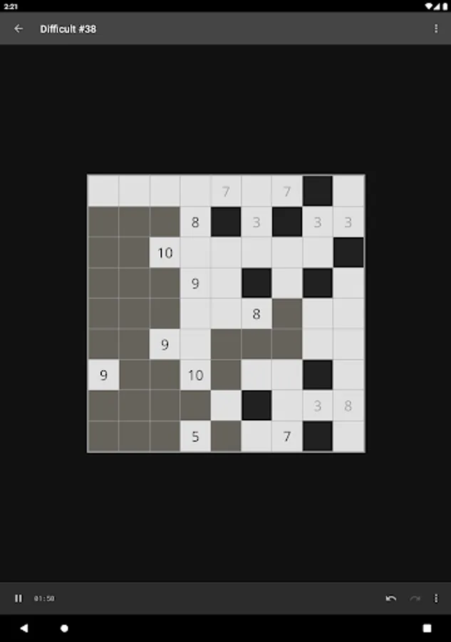 The word kuromasu is Japanese and translates to something like "where are the black fields". The logic puzzle is invented by the Japanese puzzle publishing company Nikoli and it first appeared in 1991. All puzzles in this app are created by brennerd.