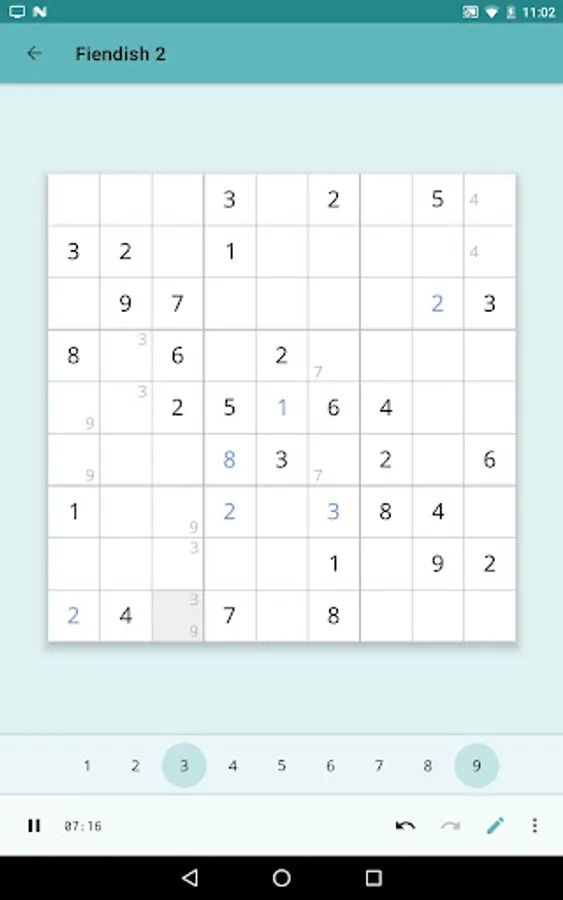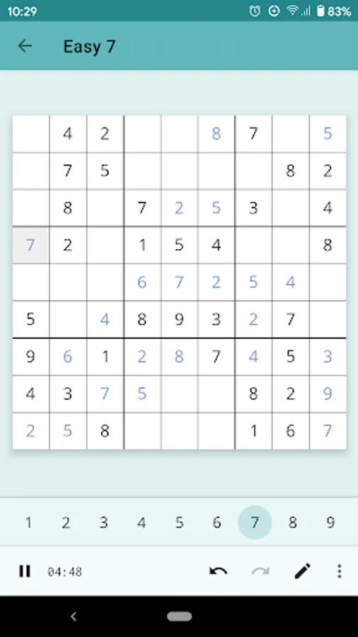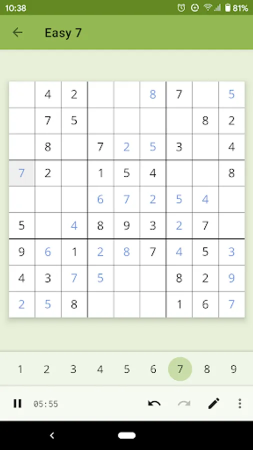 Sudoku is a challenging logic puzzle. Fill in the missing numbers in such a way that the numbers 1 to 9 occur exactly once in every row, in every column, and in every block. Each puzzle has only one solution, which can be reached with logic reasoning, no guessing needed!