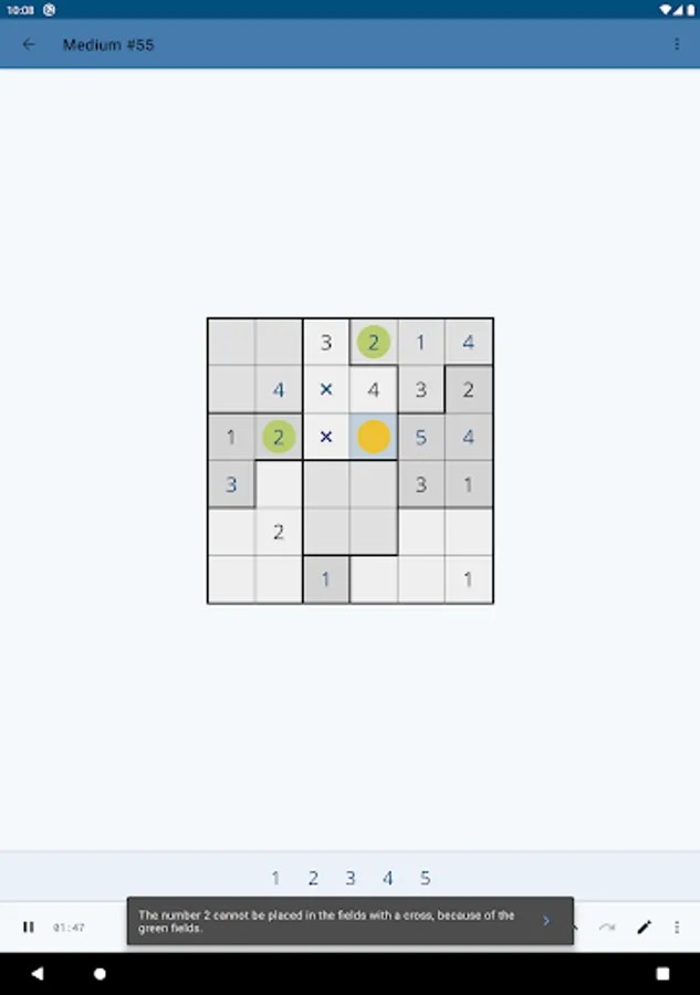 The puzzles can be pretty tricky and it might take some time to learn how to solve them. The app includes a "How to Play" to explain the solving strategies and you can always ask for a hint if you are stuck. You can also check at any time if your solution is correct so far.