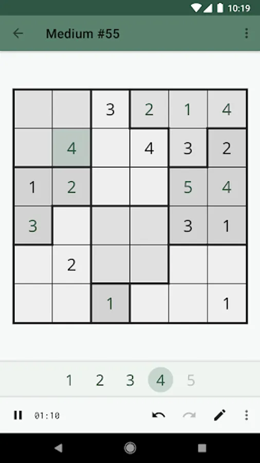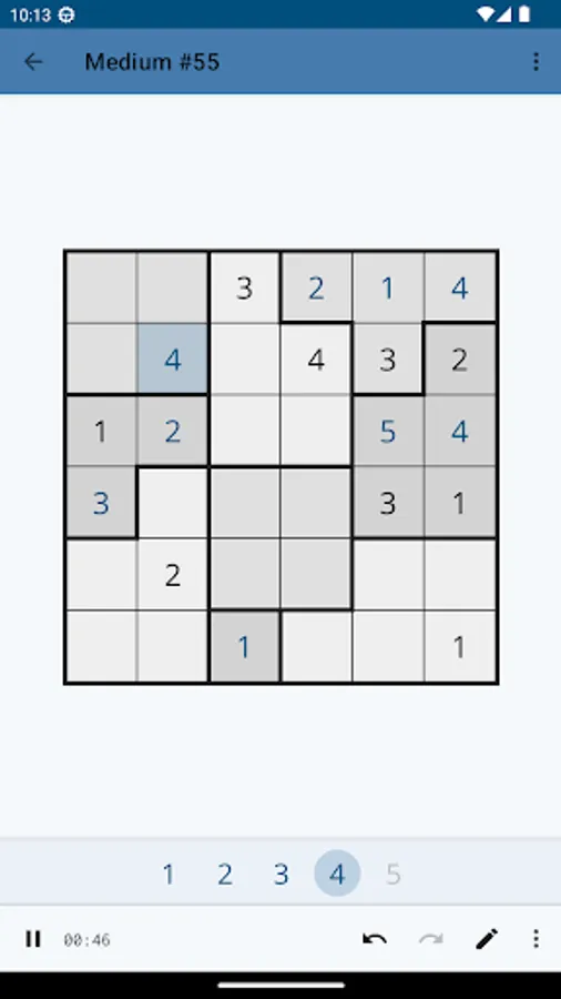 Suguru is a challenging logic puzzle. Fill in the missing numbers in every region so that all regions contain the numbers 1, 2, 3, etc., until the region is full. But make sure that the same numbers do not touch, also not diagonal! Each puzzle has only one solution, which can be reached with logic reasoning, no guessing needed.