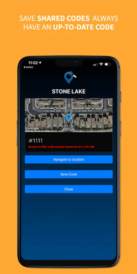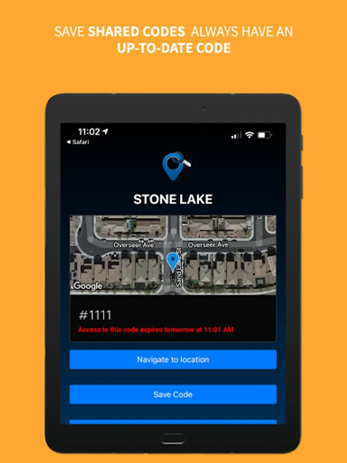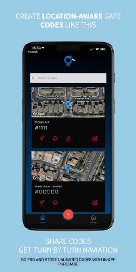 Gate Code enables you to store, manage, and share gate codes. With location-aware codes, your phone will automatically display your code as a notification.