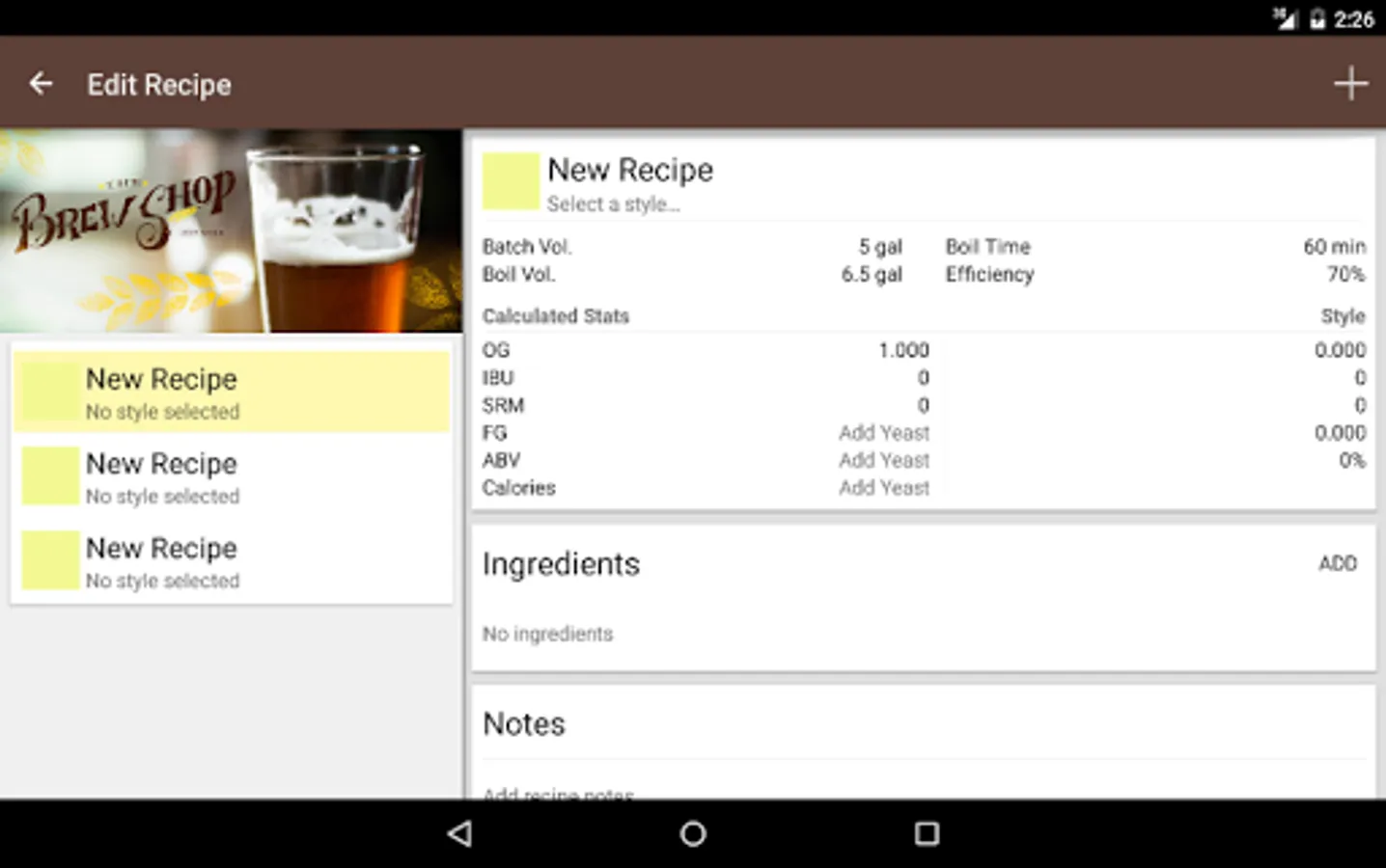 - Calculate fundamental brew stats like OG, IBU, and SRM on the fly.