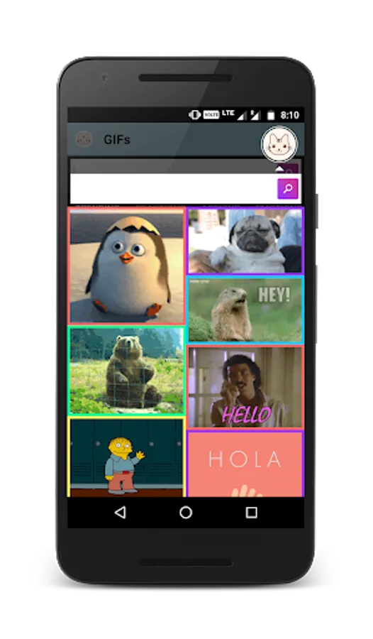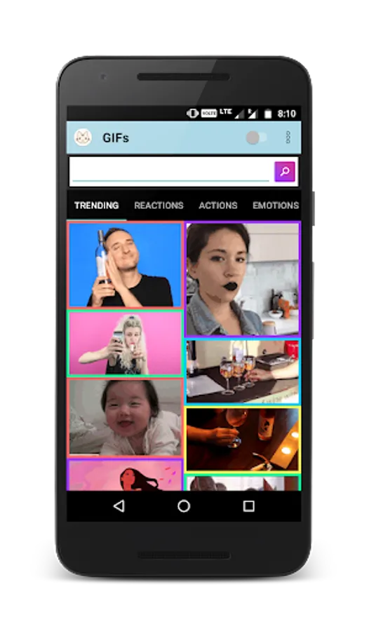 • Awesome Gif types like Trending, Reactions and Funny.