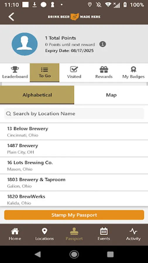 • Statewide passport program in which you earn prizes and achievement badges by visiting Ohio breweries