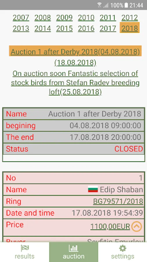 - participate in Kalimanci’s auctions – review pigeon’s info and pictures, biddings, tracking of biddings. Participants in a bidding receive push notification when one of them bids.