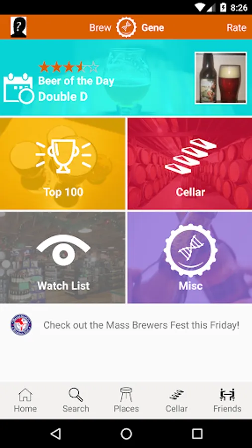The core of BrewGene is an easy-to-use and comprehensive beer tracking feature. Rate and tag what beers you're drinking, where you're having them, and how much you like them. You can also write detailed tasting notes, and create a 'watch list' of rare or favorite beers. Now, you'll never forget that great beer you tried last week, and you'll never accidentally order a bad beer twice.
