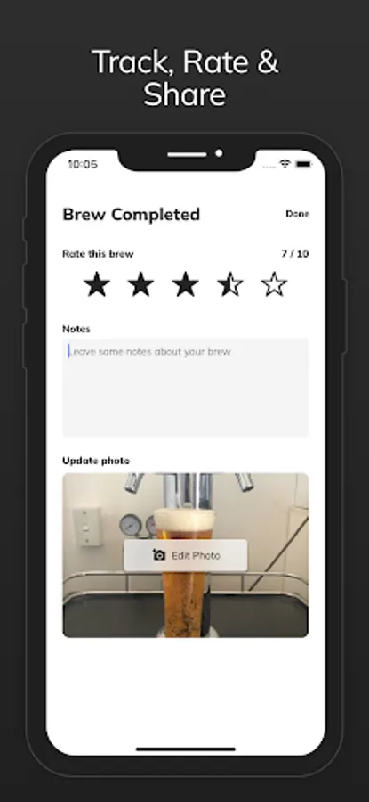 - As part of this you can rate your own brews and add notes to them explaining different processes you have carried out, tasting notes and tips for next time round. Save a photo of your brew and upload this to the app so you can see things like the colour and head retention.