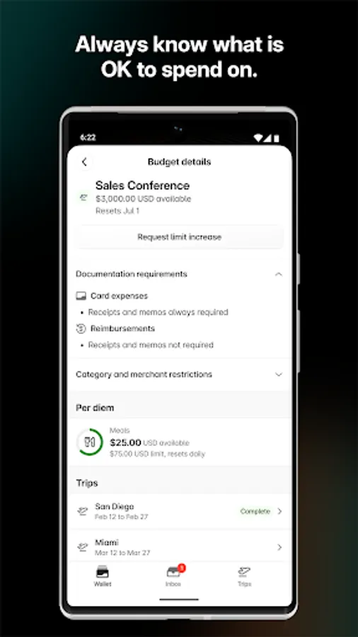 • Easily check what’s allowed per your expense policy