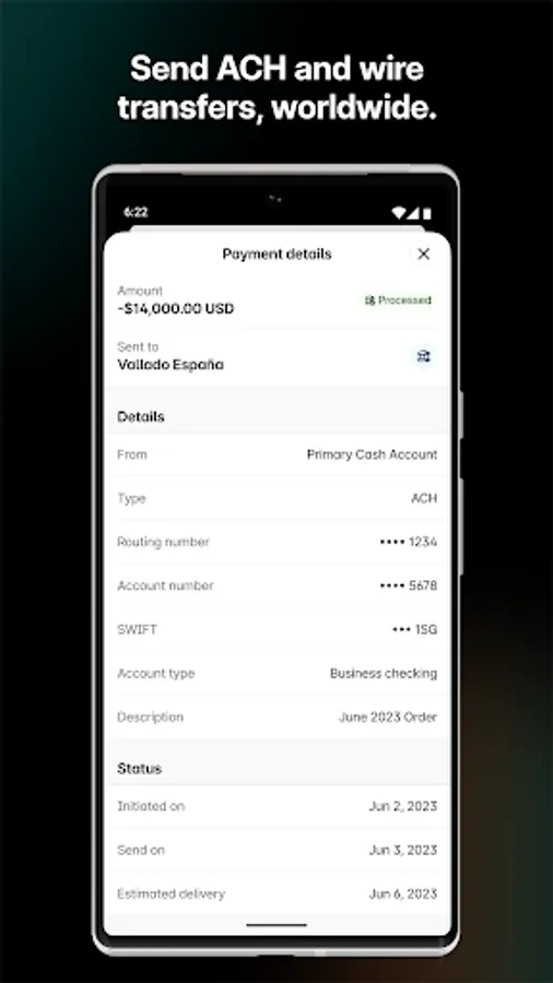 • Send and receive ACH and wire payments anywhere