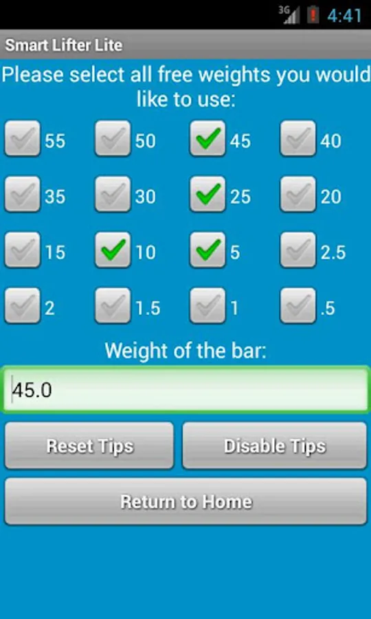 * Preferences: Choose the weights available to YOU. Smart Lifter allows you to select the weights that you have available to use and designs your workouts around them.