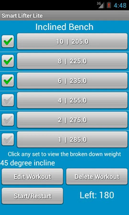 * Quick Weight Breakdown: Quickly and easily breakdown the weight on a barbell into the weights you select in preferences. Based on a total weight, Smart Lifter tells you how many of each free weight to put on each side. Additionally, you can enter the number of each weight on one side of a bar and Smart Lifter will tell you the bar’s total weight.