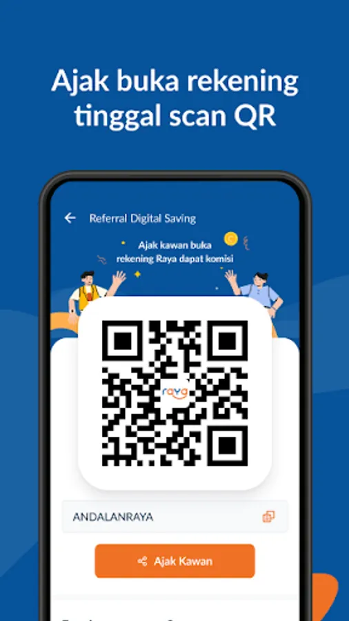 Make sure you are already a Bank Raya customer and have a smartphone, OK? You can come to the nearest Bank Raya Work Unit (Kanca, KCP and Community Branch) and bring the following documents: