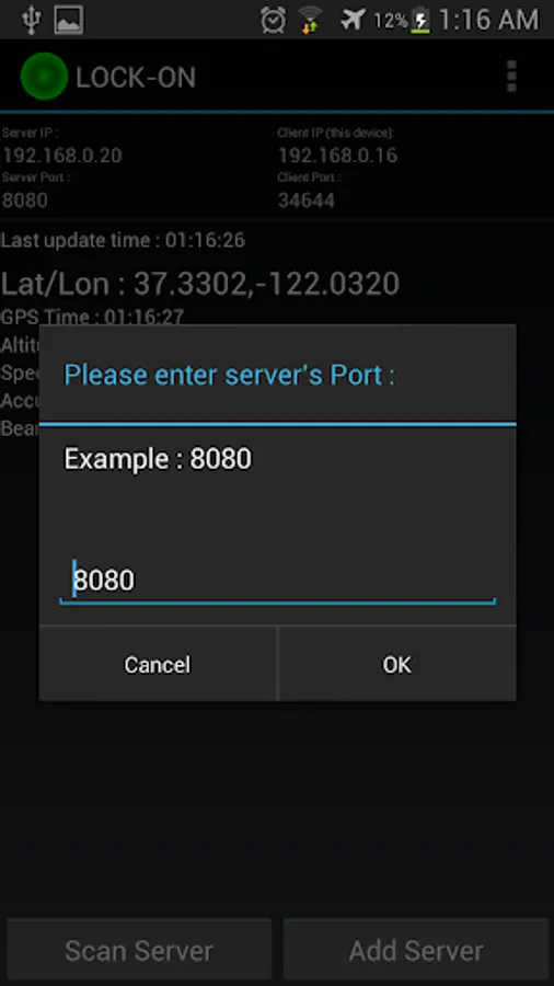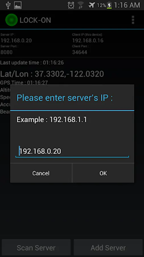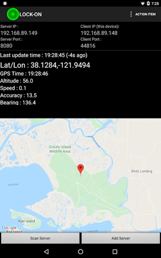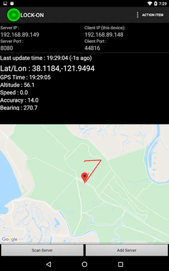 - Wait for server's GPS to "Lock-On", and the client will automatically get the GPS data.