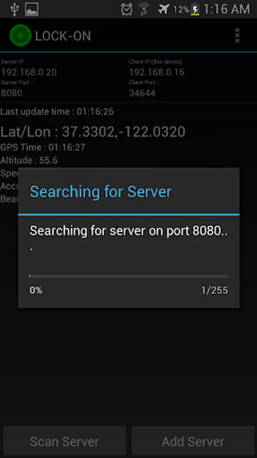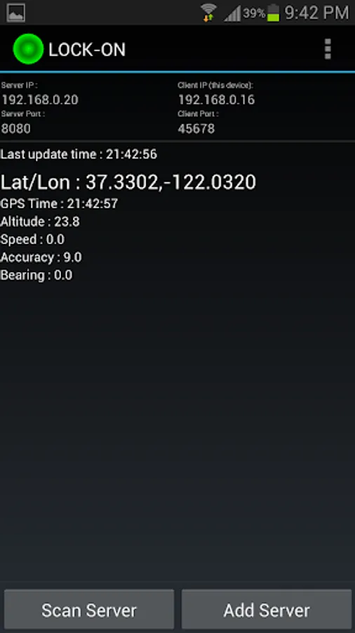 - Wait for server's GPS to "Lock-On", and the client will automatically get the GPS data.